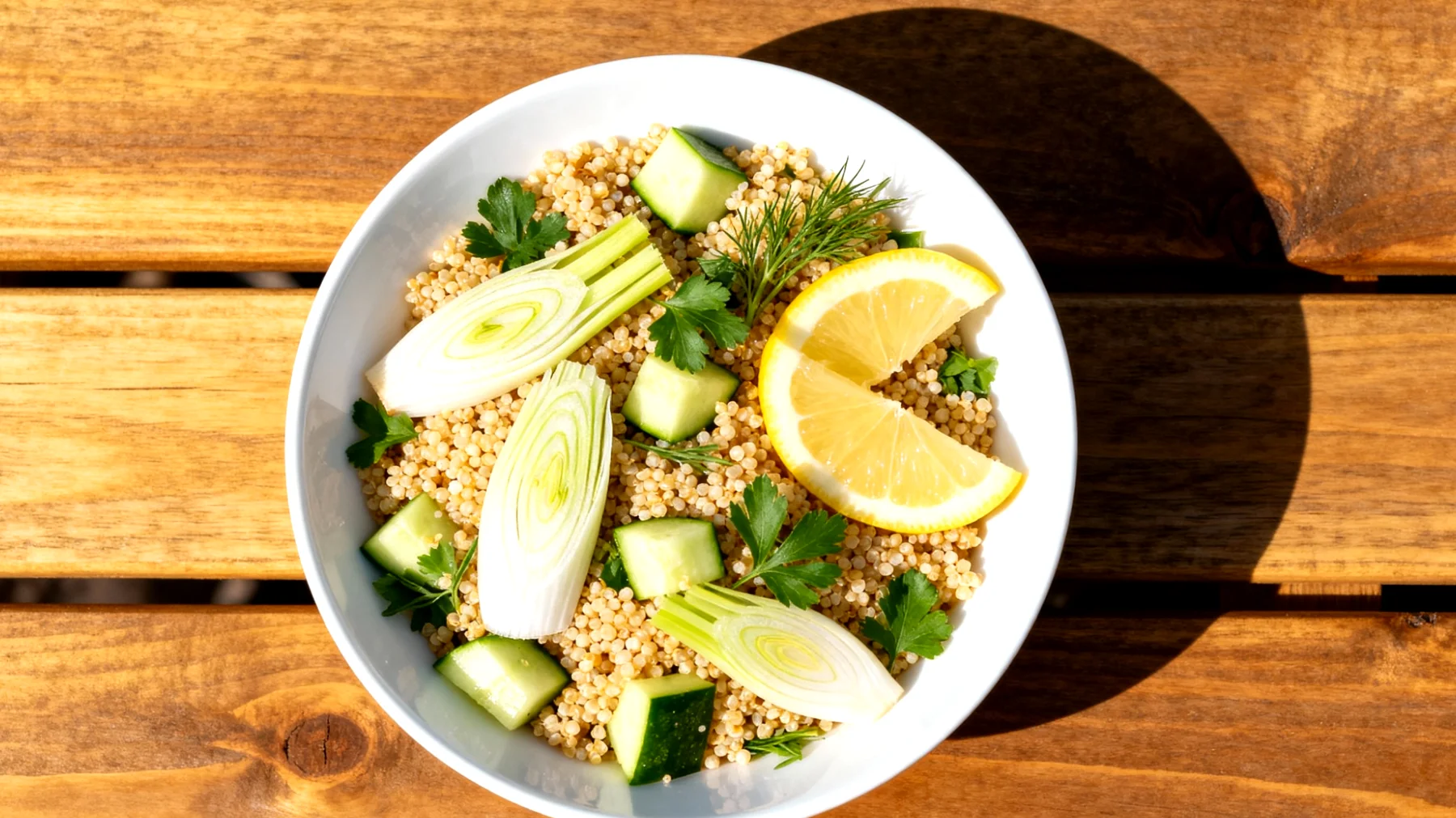 An hektischen Arbeitstagen braucht der Körper eine Mahlzeit, die sättigt, ohne zu beschweren – und gleichzeitig aktiv gegen das unangenehme Gefühl von Wassereinlagerungen arbeitet. Genau hier kommt ein Hirsesalat mit Fenchel, Gurke, Zitrone und frischen Kräutern ins Spiel. Diese Kombination ist weit mehr als nur eine leichte Mittagsoption: Sie vereint gezielt Zutaten, die den Flüssigkeitshaushalt regulieren und gleichzeitig mit wertvollen Nährstoffen versorgen.