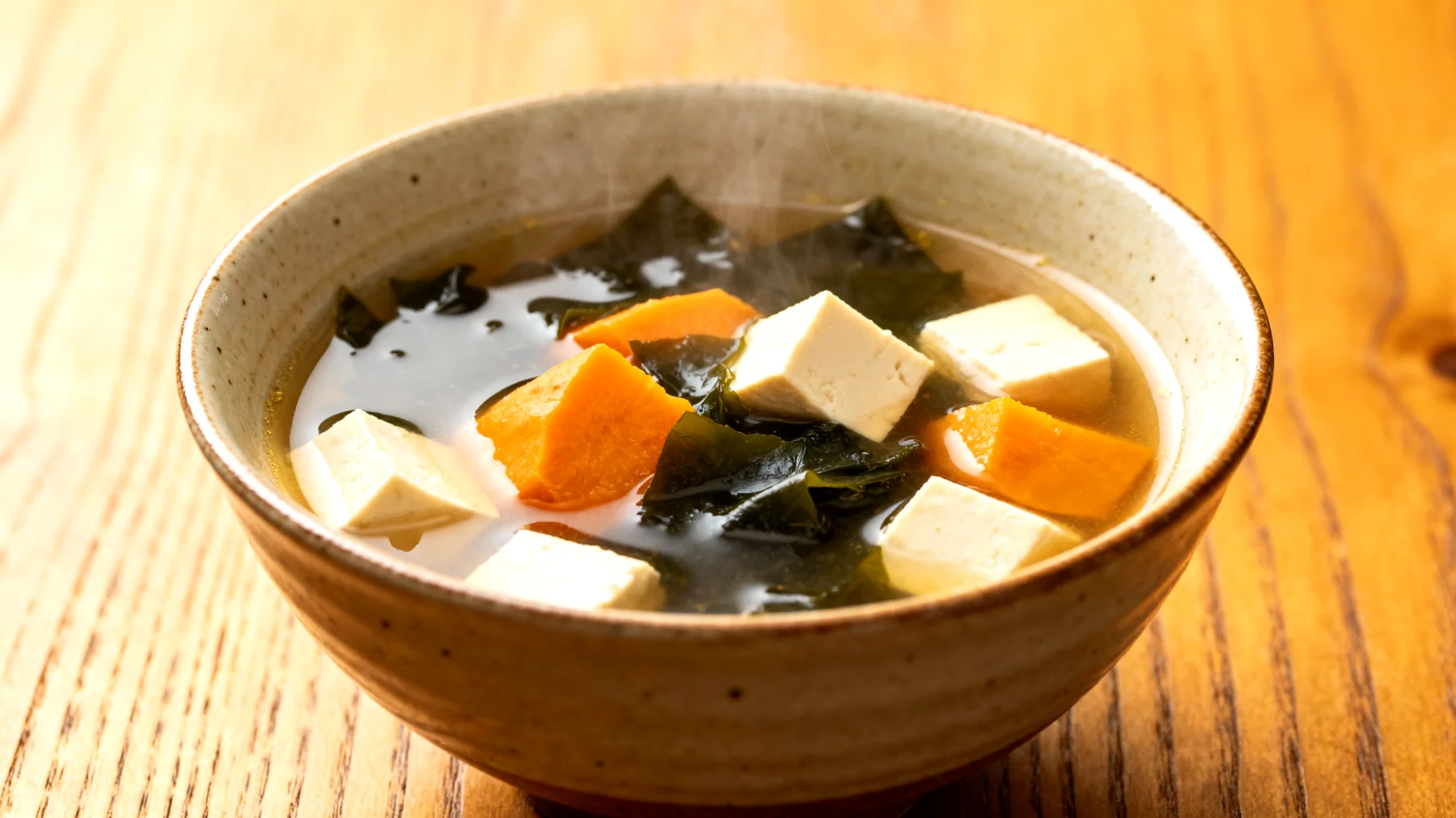 Die Süßkartoffel wird in kleine Würfel geschnitten und in Dashi oder einfach in Gemüsebrühe für etwa 10 Minuten gekocht. Parallel schneidet man den Tofu in Würfel und lässt die getrockneten Wakame-Algen in kaltem Wasser quellen – sie vergrößern ihr Volumen um das Mehrfache. Sobald die Süßkartoffel weich ist, kommen Tofu und ausgedrückte Wakame-Algen hinzu. Nach zwei Minuten wird der Topf vom Herd genommen und muss einige Minuten abkühlen. Erst dann wird die Miso-Paste in einer Tasse mit etwas Suppenflüssigkeit verrührt und zur Suppe gegeben. Fertig ist eine Mahlzeit, die sowohl Körper als auch Geist nährt.
