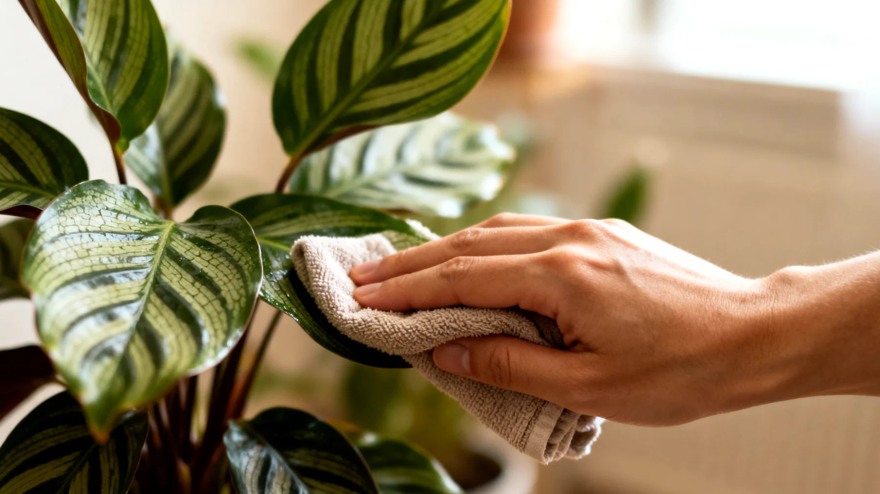 Der richtige Ansatz für die Reinigung empfindlicher Calathea-Blätter
