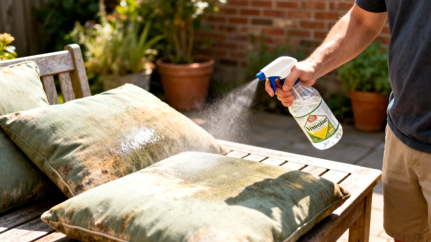 Eine Sprühlösung aus Wasser und Haushaltsessig im Verhältnis eins zu eins ist eine bewährte Methode zur Bekämpfung von Gerüchen an Gartenmöbeln. Der niedrige pH-Wert von rund drei senkt die Oberflächenspannung und schafft für Schimmelpilze ein ungünstiges Milieu. Essigsäure wirkt antibakteriell und kann Geruchsmoleküle neutralisieren – ein praktischer Ansatz, der sich in der Pflege von Außentextilien vielfach bewährt hat.